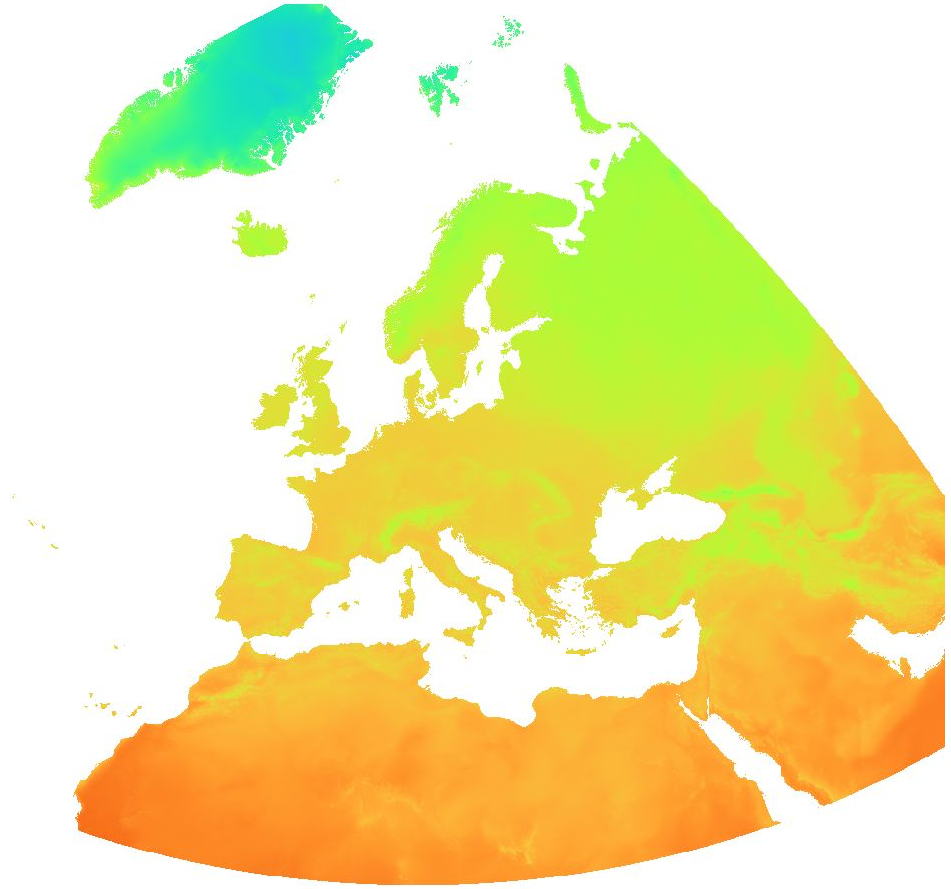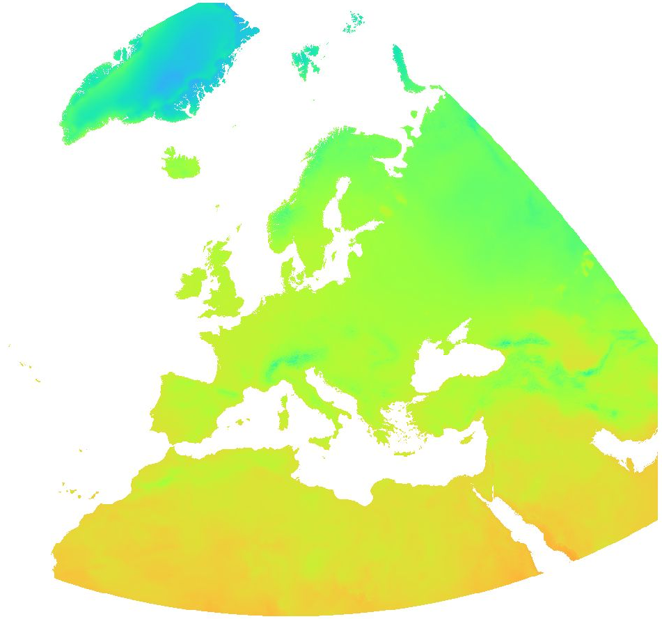 Overview: ERA5-Land is a reanalysis dataset providing a consistent view of the evolution of land variables over several decades at an enhanced resolution compared to ERA5. ERA5-Land has been produced by replaying the land component of the ECMWF ERA5 climate reanalysis. Reanalysis combines model data with observations from across the world into a globally complete and consistent dataset using the laws of physics. Reanalysis produces data that goes several decades back in time, providing an accurate description of the climate of the past. Air temperature (2 m): Temperature of air at 2m above the surface of land, sea or in-land waters. 2m temperature is calculated by interpolating between the lowest model level and the Earth's surface, taking account of the atmospheric conditions. Processing steps: The original hourly ERA5-Land data has been spatially enhanced from 0.1 degree to 30 arc seconds (approx. 1000 m) spatial resolution by image fusion with CHELSA data (V1.2) (https://chelsa-climate.org/). For each day we used the corresponding monthly long-term average of CHELSA. The aim was to use the fine spatial detail of CHELSA and at the same time preserve the general regional pattern and fine temporal detail of ERA5-Land. The steps included aggregation and enhancement, specifically: 1. spatially aggregate CHELSA to the resolution of ERA5-Land 2. calculate difference of ERA5-Land - aggregated CHELSA 3. interpolate differences with a Gaussian filter to 30 arc seconds 4. add the interpolated differences to CHELSA The spatially enhanced daily ERA5-Land data has been aggregated on a weekly basis starting from Saturday for the time period 2016 - 2020. Data available is the weekly average of daily averages, the weekly minimum of daily minima and the weekly maximum of daily maxima of air temperature (2 m). File naming: Average of daily average: era5_land_t2m_avg_weekly_YYYY_MM_DD.tif Max of daily max: era5_land_t2m_max_weekly_YYYY_MM_DD.tif Min of daily min: era5_land_t2m_min_weekly_YYYY_MM_DD.tif The date in the file name determines the start day of the week (Saturday). Pixel value: °C * 10 Example: Value 44 = 4.4 °C The QML or SLD style files can be used for visualization of the temperature layers. Coordinate reference system: ETRS89 / LAEA Europe (EPSG:3035) (EPSG:3035) Spatial extent: north: 82:00:30N south: 18N west: 32:00:30W east: 70E Spatial resolution: 1km Temporal resolution: weekly Time period: 01/01/2016 - 12/31/2020 Format: GeoTIFF Representation type: Grid Software used: GDAL 3.2.2 and GRASS GIS 8.0.0 (r.resamp.stats -w; r.relief) Lineage: Dataset has been processed from original Copernicus Climate Data Store (ERA5-Land) data sources. As auxiliary data CHELSA climate data has been used. Original ERA5-Land dataset license: https://cds.climate.copernicus.eu/api/v2/terms/static/licence-to-use-copernicus-products.pdf CHELSA climatologies (V1.2): Data used: Karger D.N., Conrad, O., Böhner, J., Kawohl, T., Kreft, H., Soria-Auza, R.W., Zimmermann, N.E, Linder, H.P., Kessler, M. (2018): Data from: Climatologies at high resolution for the earth's land surface areas. Dryad digital repository. http://dx.doi.org/doi:10.5061/dryad.kd1d4 Original peer-reviewed publication: Karger, D.N., Conrad, O., Böhner, J., Kawohl, T., Kreft, H., Soria-Auza, R.W., Zimmermann, N.E., Linder, P., Kessler, M. (2017): Climatologies at high resolution for the Earth land surface areas. Scientific Data. 4 170122. https://doi.org/10.1038/sdata.2017.122 Other resources: https://data.mundialis.de/geonetwork/srv/eng/catalog.search#/metadata/601ea08c-0768-4af3-a8fa-7da25fb9125b Processed by: mundialis GmbH & Co. KG, Germany (https://www.mundialis.de/) Contact: mundialis GmbH & Co. KG, info@mundialis.de Acknowledgements: This study was partially funded by EU grant 874850 MOOD. The contents of this publication are the sole responsibility of the authors and don't necessarily reflect the views of the European Commission.